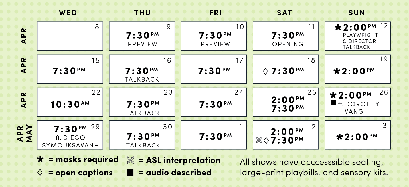 Special performances: Apr 26 ft. Dorothy Vang, Apr 29 ft. Diego Symouksavanh