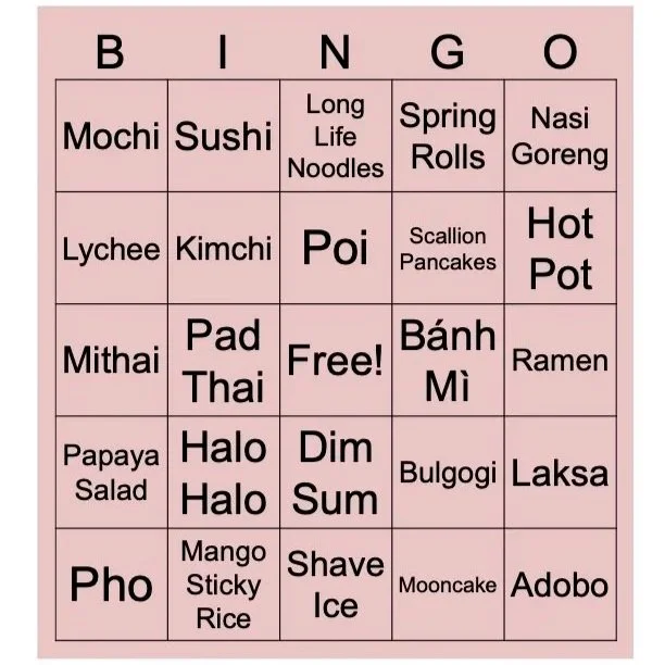 Asian American Food Bingo